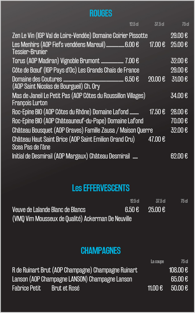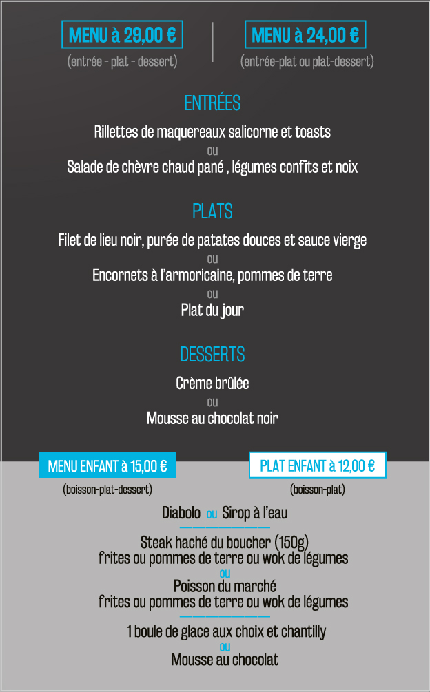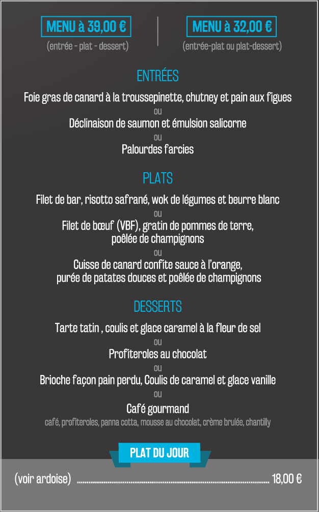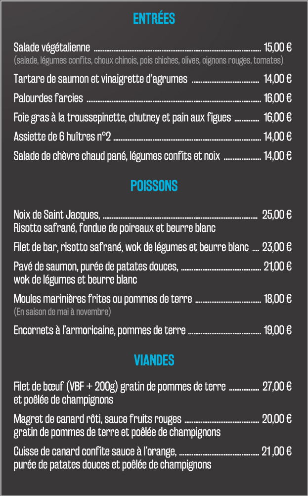 Situé en face du château de Noirmoutier avec un panorama sur les remparts, nous vous accueillons dans un cadre moderne et authentique. Venez déguster une cuisine de goût et de qualité, le tout « fait maison ». En amoureux, entre amis ou en famille, nous vous invitons à découvrir notre cuisine, en passant du foie gras aux palourdes de Noirmoutier ; du magret de canard "sucré salé" au filet de bar et bien d'autres saveurs encore...